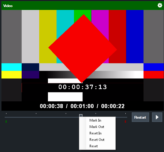The Video Input supports specifying custom Start (Mark In) and End (Mark Out) points for playback.