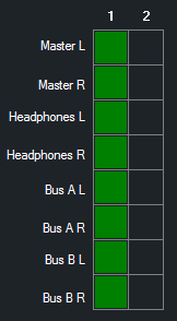 Each column represents a source channel, each row represents a destination bus that the channel can be routed to.